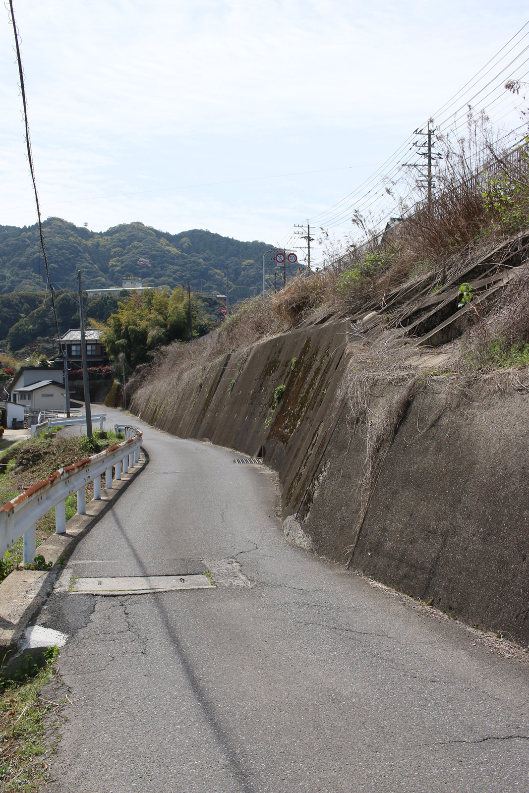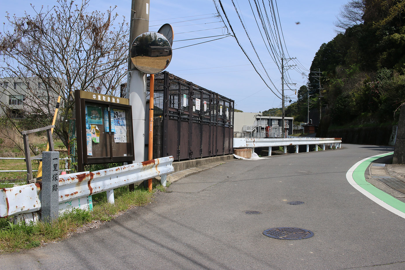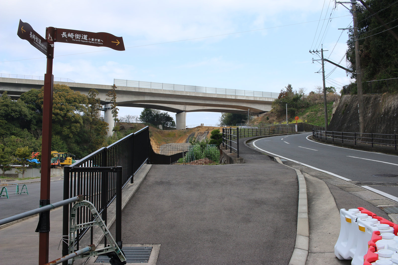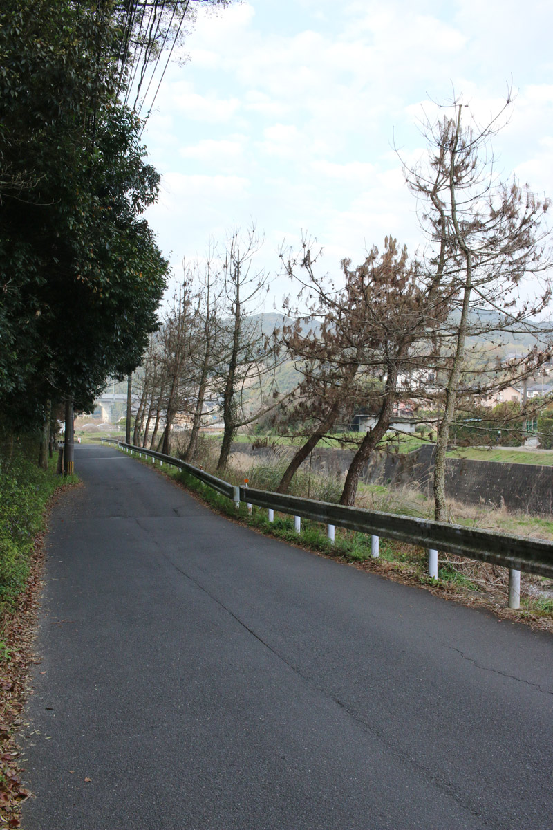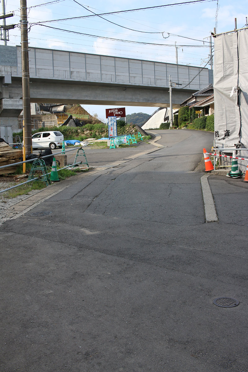 分断された街道を両端から望む(ただし、両端から互いの街道は見えない)。二枚目に道標が映っています。