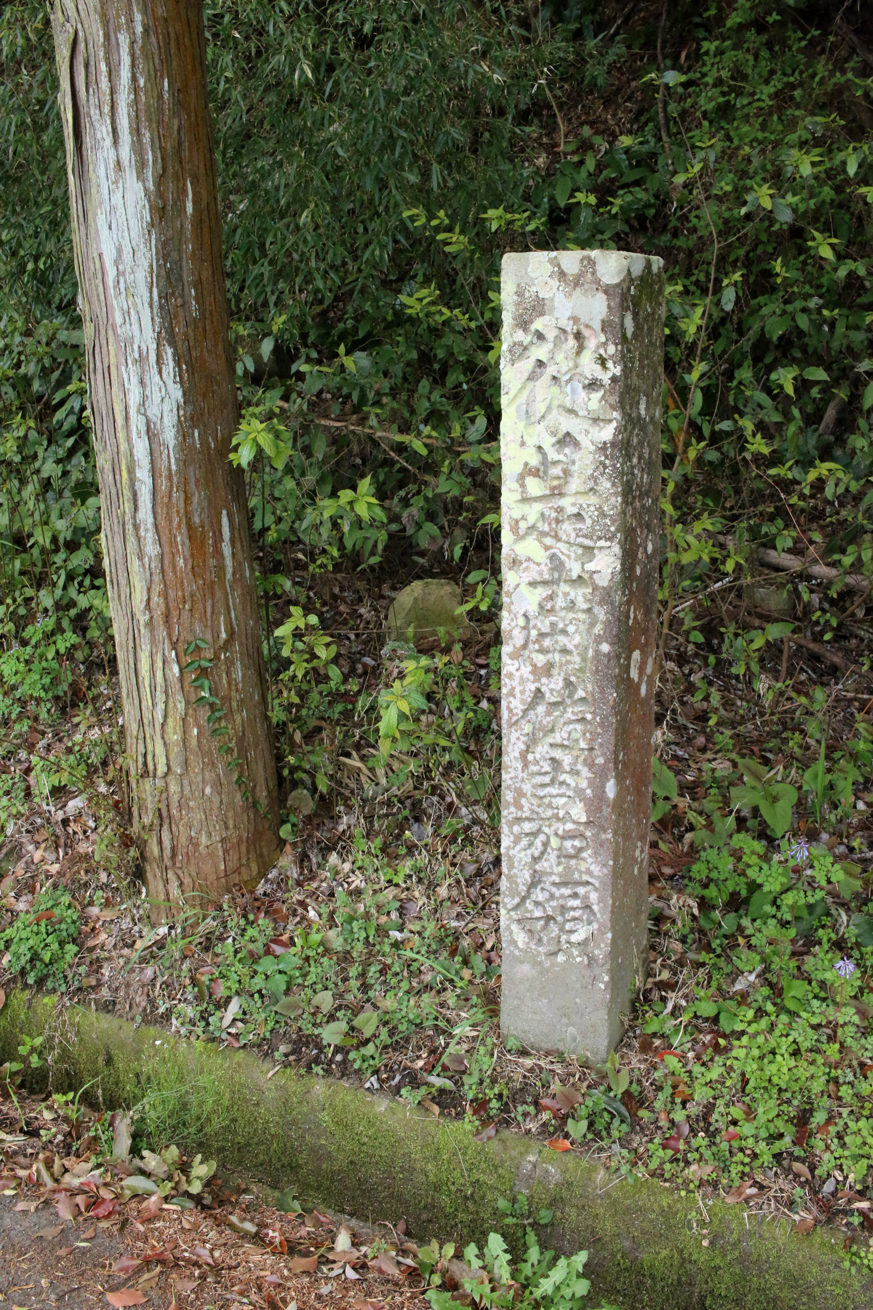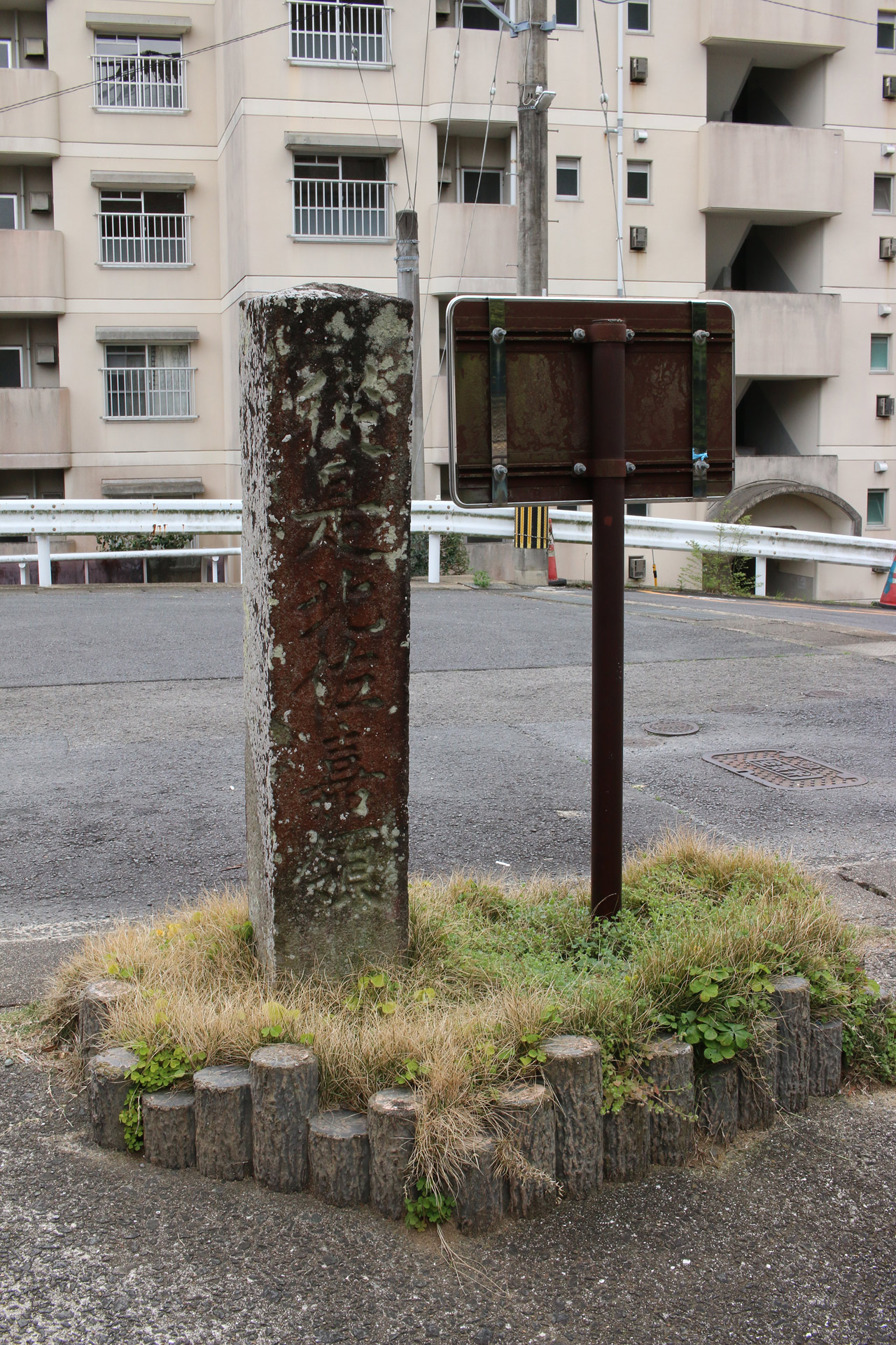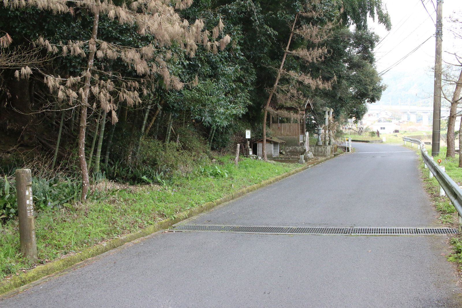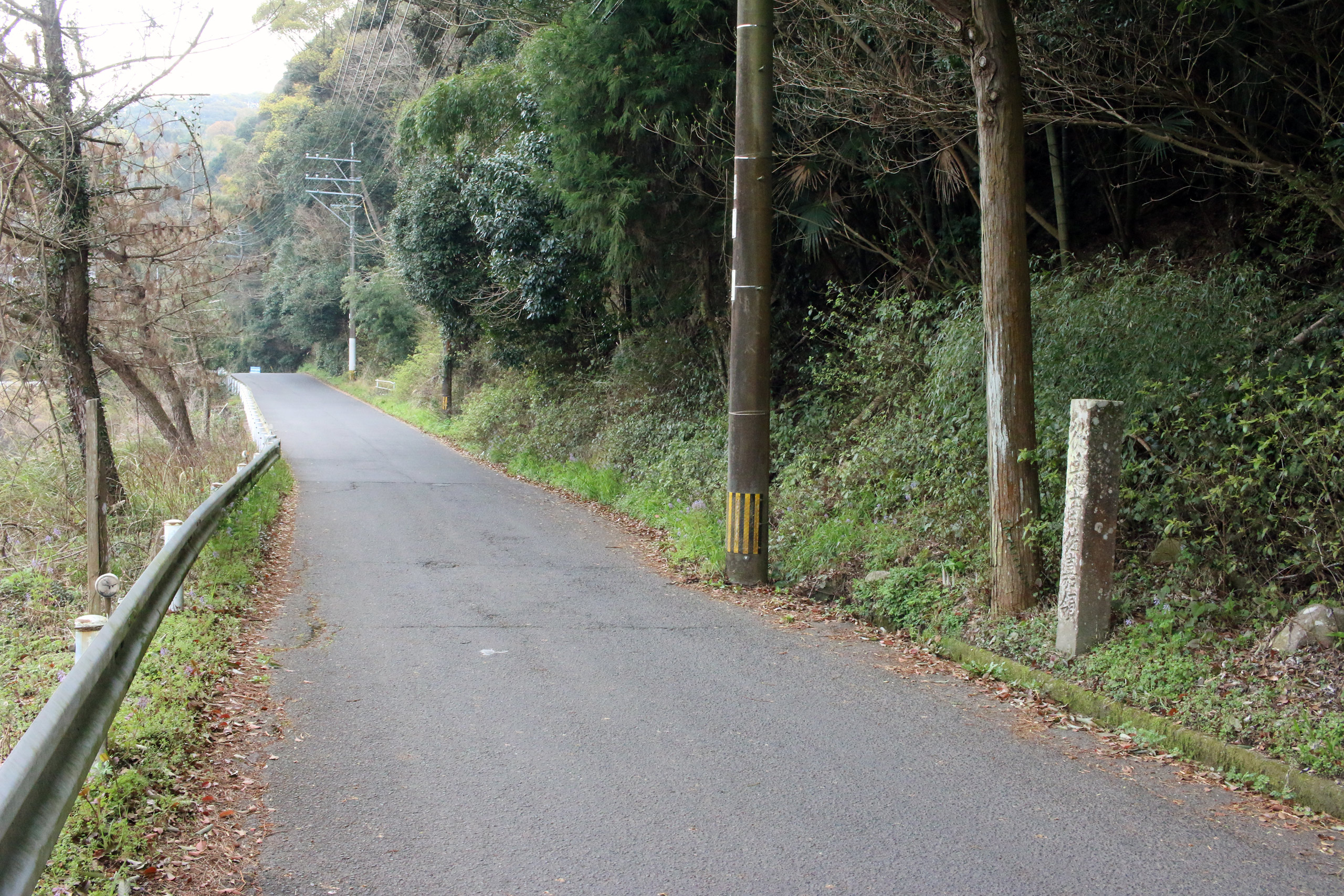 街道が高速道路(長崎大分線)の下をくぐった辺りで街道が寸断されています。よって、迂回して街道に進みます。すると、やっと道標を発見。