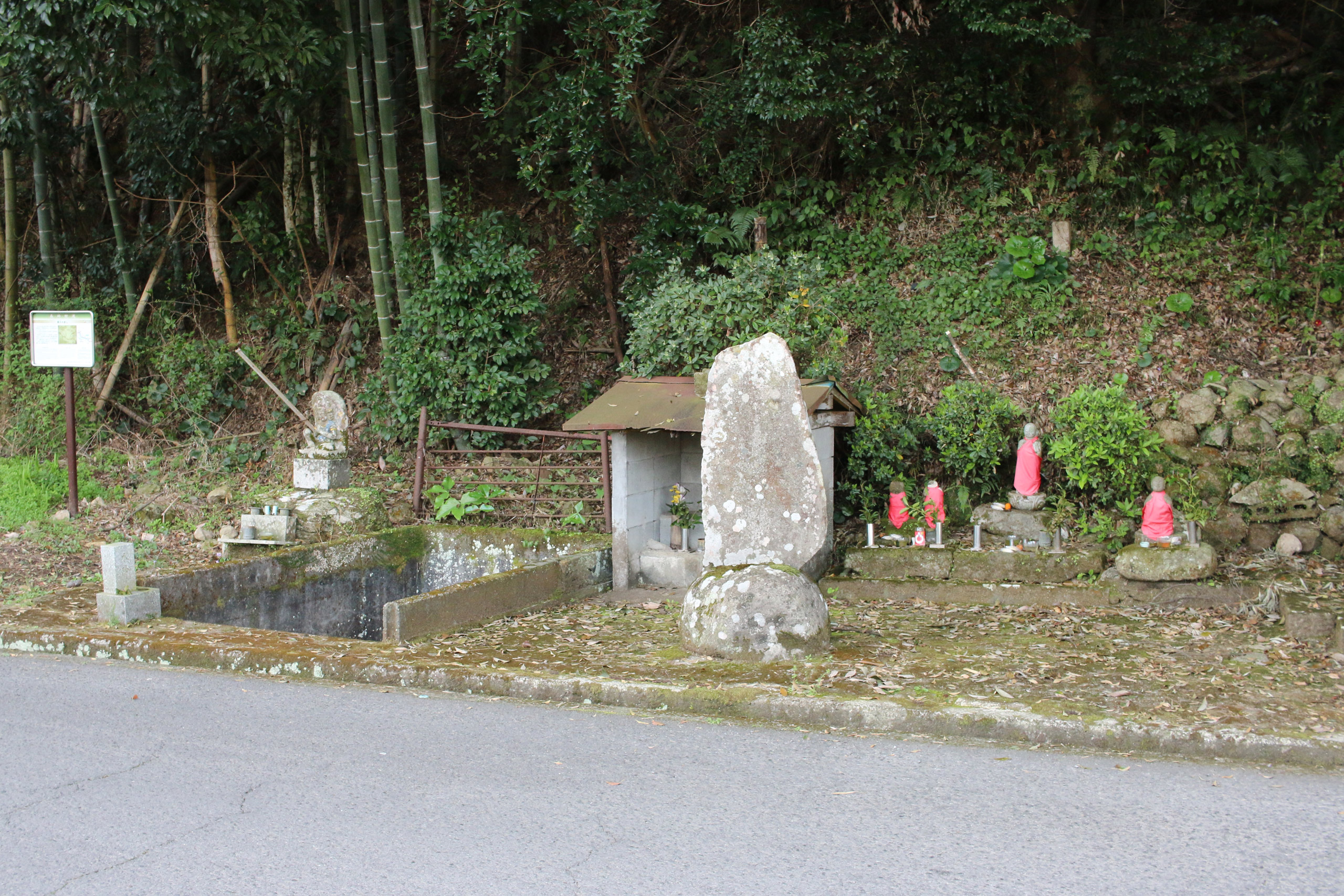 小さな川と小さな話の近くにとても大事にされたお地蔵さんを発見。「地蔵菩薩」とあります。何やら不思議な歴史があるようですので、下記に引用します。