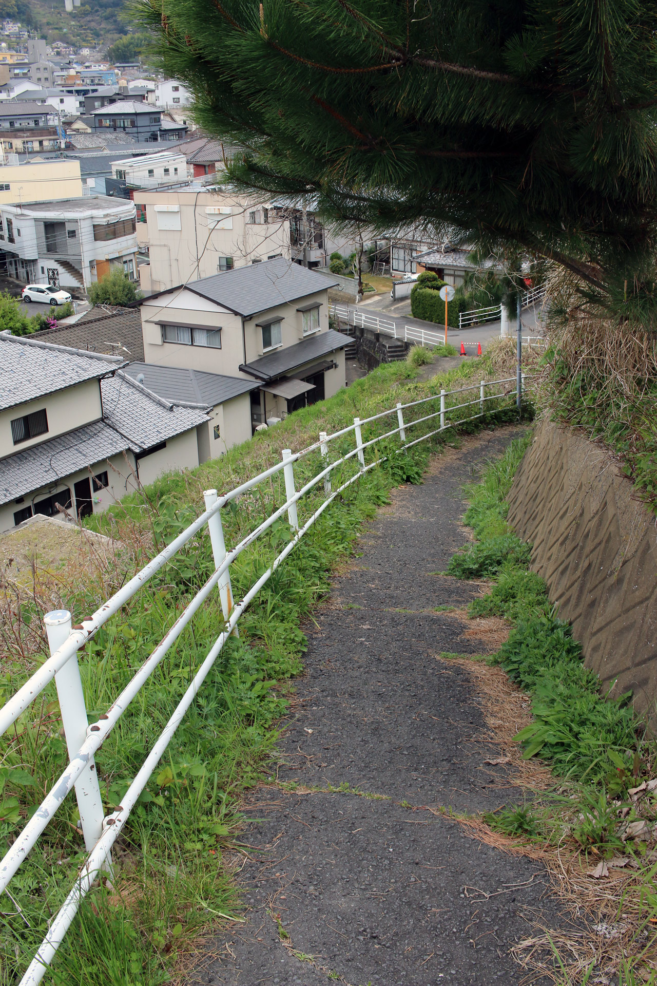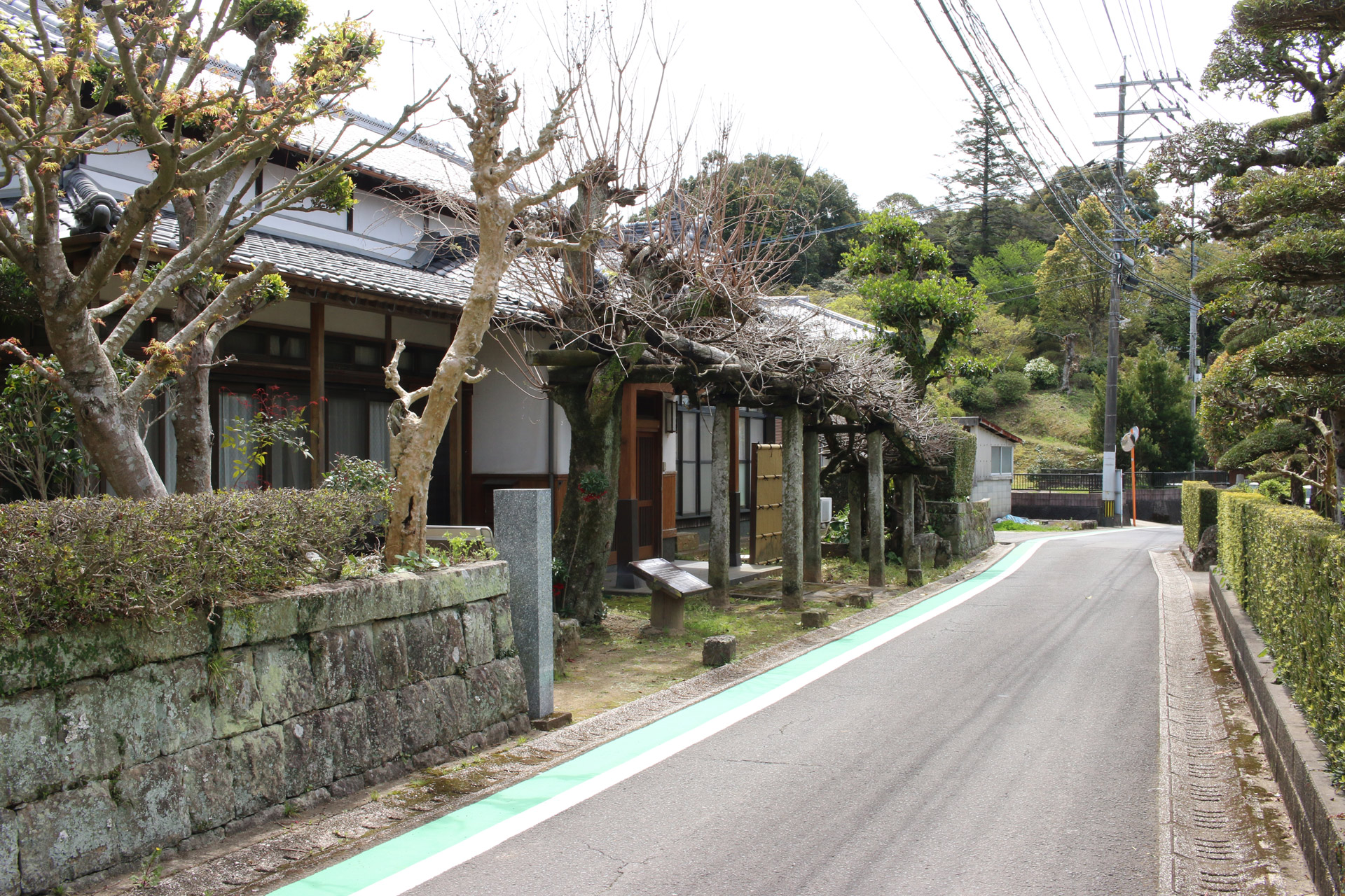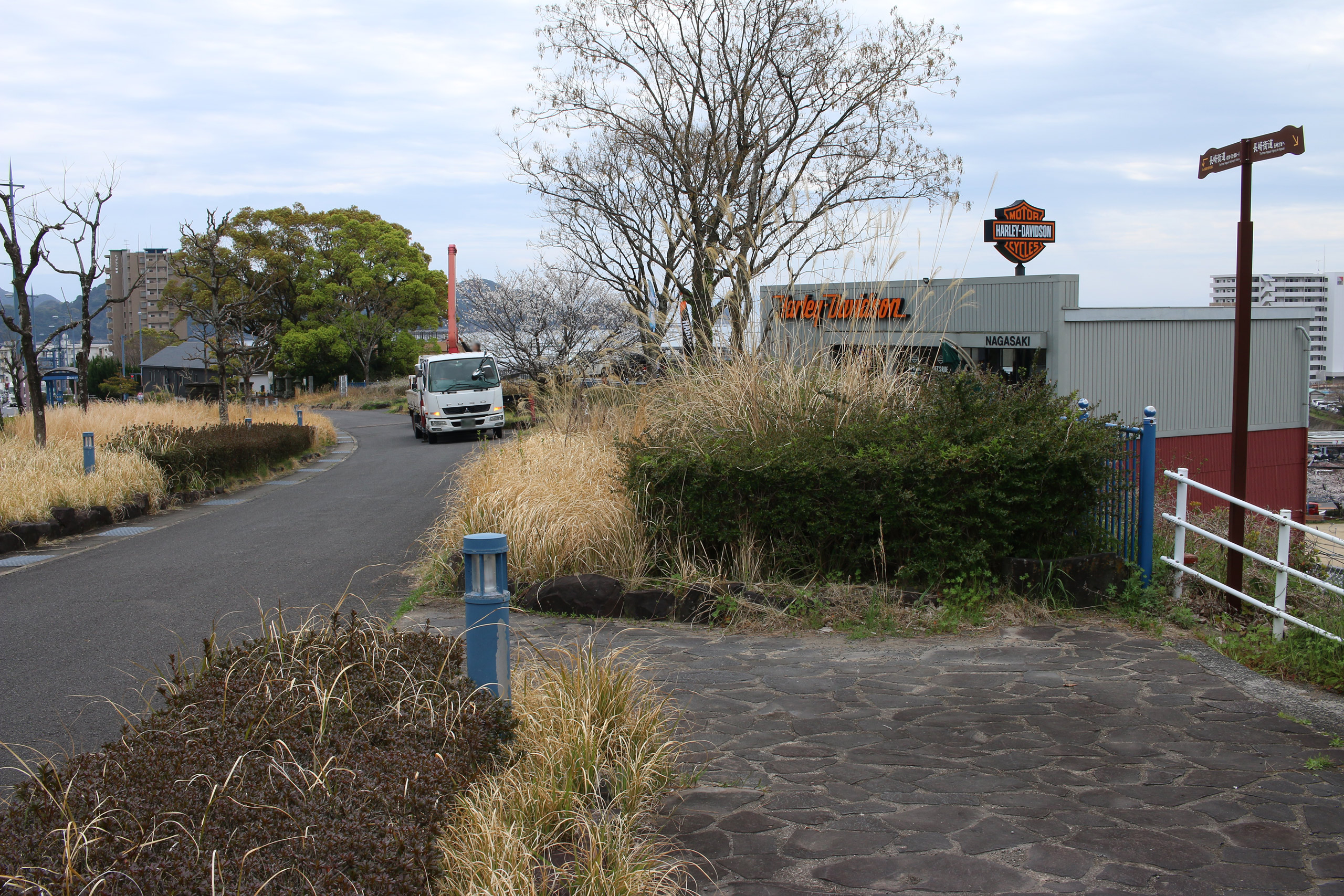 腹切坂を進み「日見峠道浪漫」の案内板と「ハーレーダビッドソン長崎」の前を通ると、そのすぐ近くの細い坂を下ると、再び細い街道らしい道へ入ります。