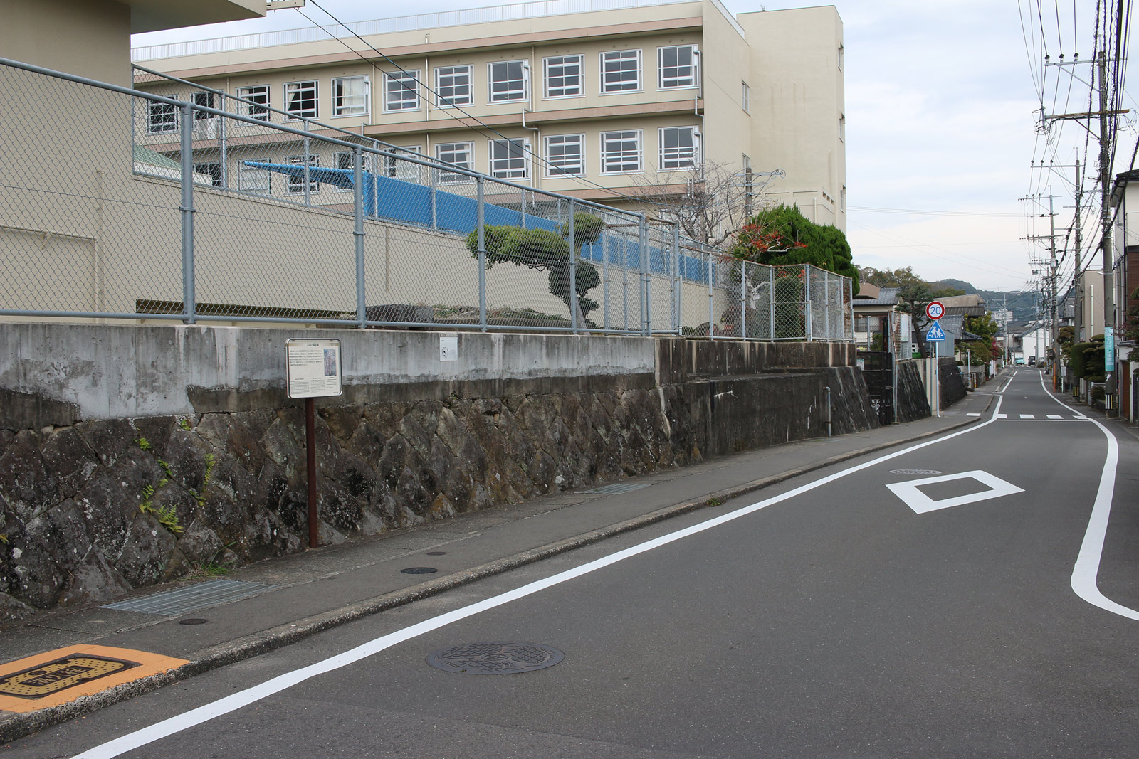 矢上小学校です。案内板によれば、この付近に脇本陣があったとのこと。