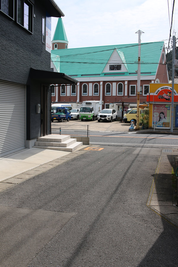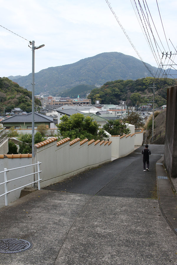 東長崎教会が目立ちますね。そして、細い街道を進みます。