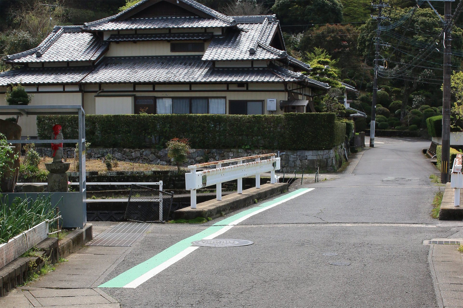 横断歩道を渡り、国道を横切ると街道はふたたび細い路地へ入ります。