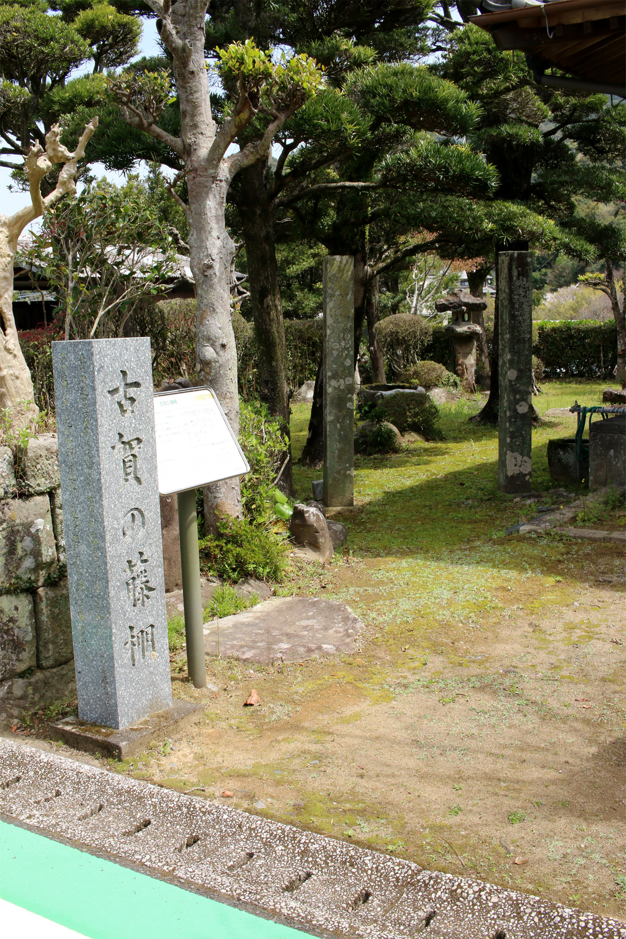 少し進むと、「古賀の藤棚」という、茶屋跡があります。藤の咲く季節に来るとまた違った雰囲気が楽しめるでしょうね。(案内板より引用)