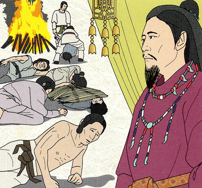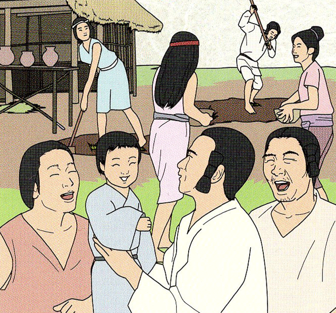 初めて男女に「調」(みつぎ:貢物)と呼ばれる税を課し、男性は獣肉・皮革を、女性は絹・布関係を納めさせたのである。