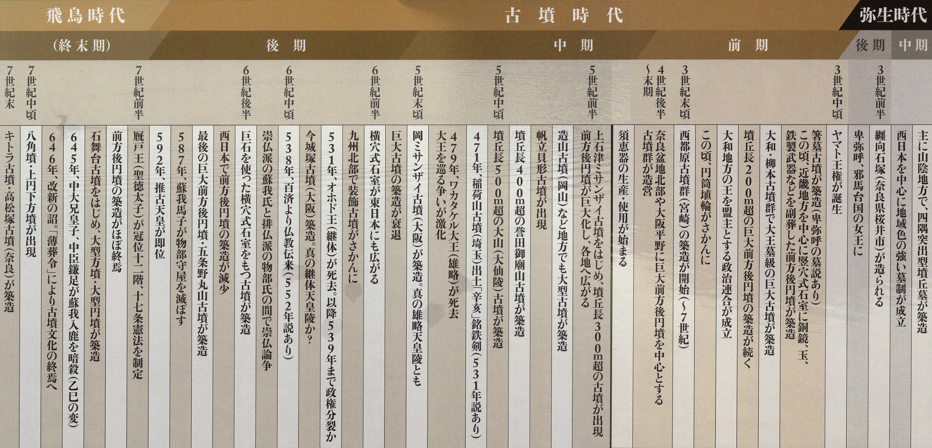 古墳時代とは三世紀の後半から七世紀頃までとされ、ヤマト政権(王権)が全国各地の豪族たちを支配する中央集権体制の黎明期である。次の飛鳥時代は西暦592年から。